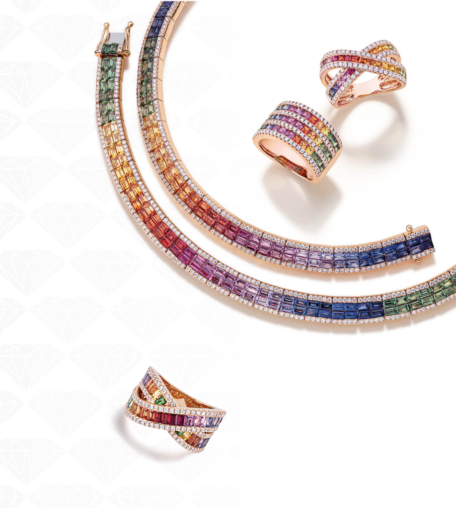 Our colored gemstone collections — including Rainbow, Colored Gemstone Fashion, and Colored Gemstone Classic — invite you into a world of vibrant brilliance and luminous hues. From rich rubies to elegant emeralds, each piece blends timeless sophistication with modern design, creating a captivating spectrum of color that transforms jewelry into true works of art.